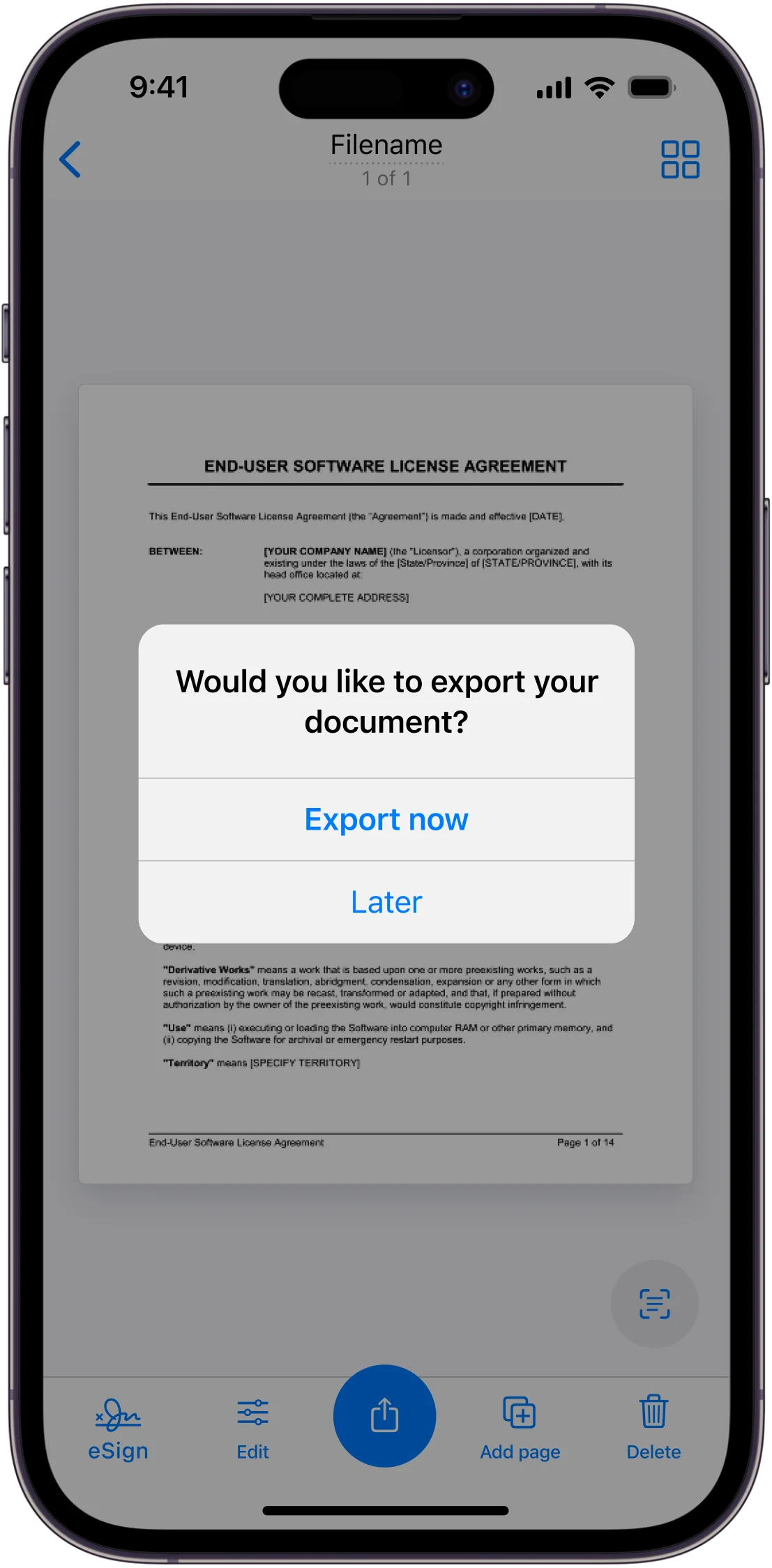 - Add scanned documents to other apps